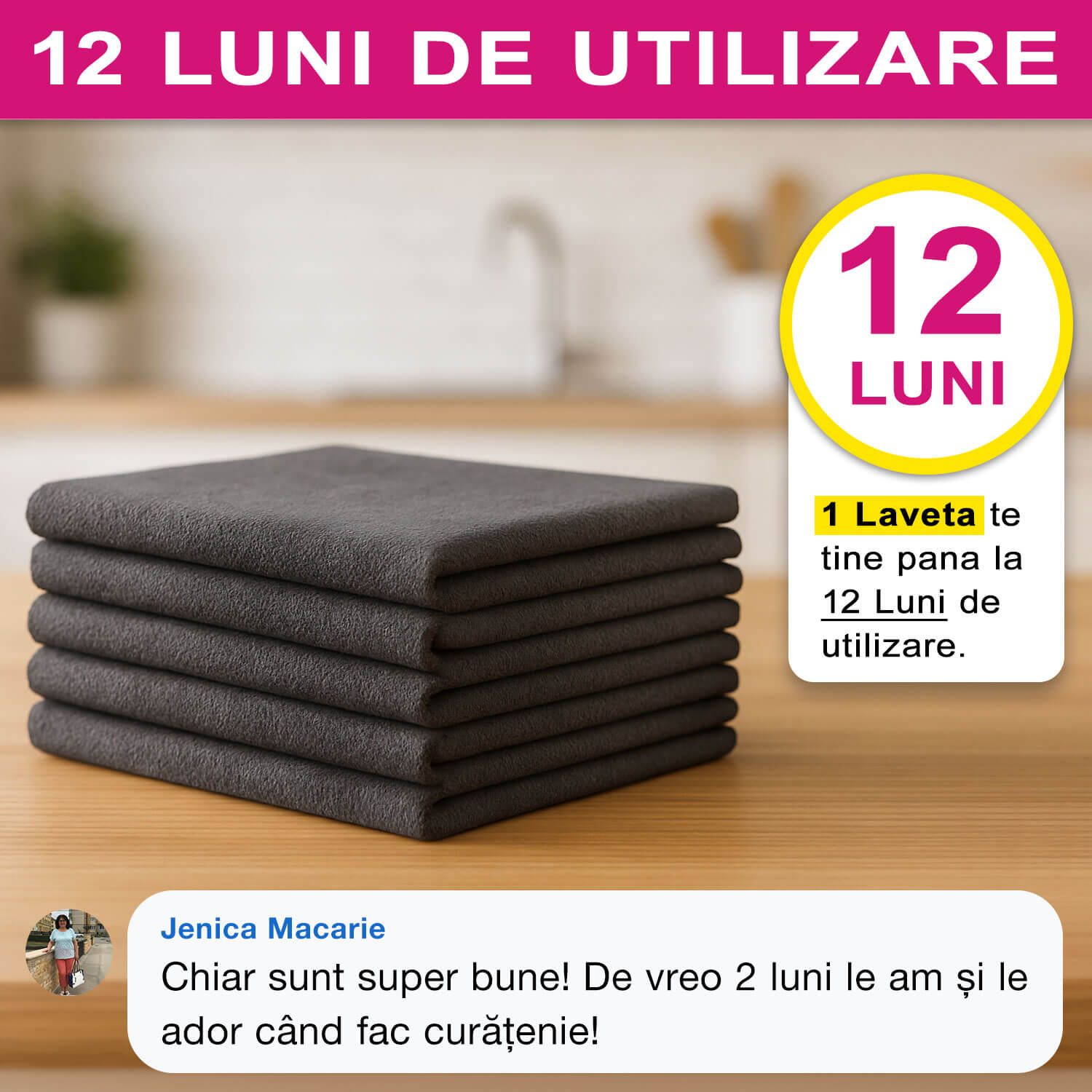 Spre deosebire de lavetele obișnuite care se deteriorează în câteva săptămâni, o singură Lavetă Magică poate fi utilizată chiar și peste 12 luni fără să își piardă eficacitatea.